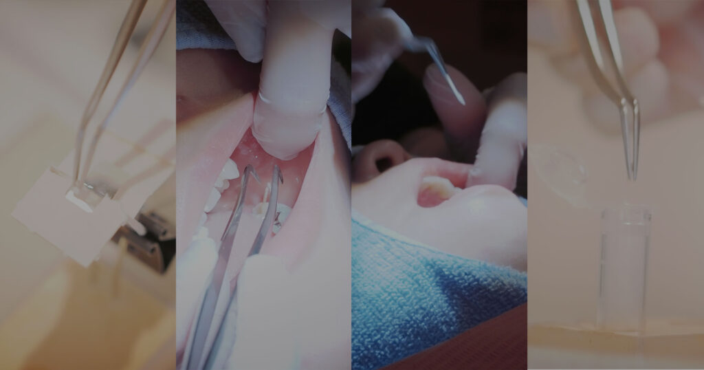 厳密な検査のために、歯肉に検査棒を入れ浸出液を採取します。短時間で痛みもありませんのでご安心ください!サンプルを検査機関に郵送し、後日検査結果と共に歯周内科治療と生活指導を行います。