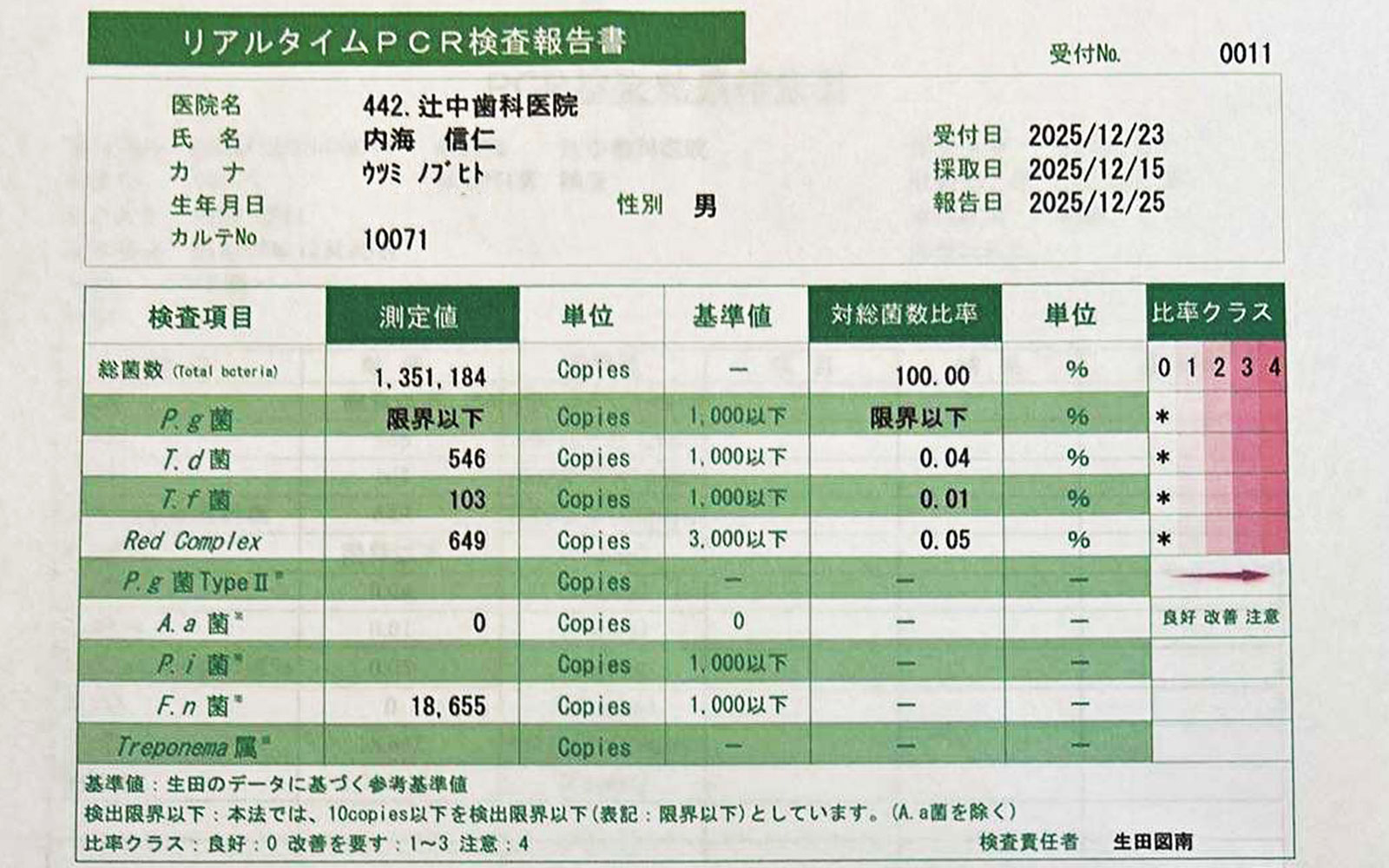 実際の検査結果用紙はこちら